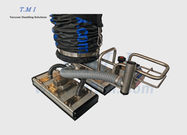 标准TD手柄+矩形橡胶双吸盘主要应用于纸箱、机柜、板材、石材等工件的搬运、码垛,吸盘的距离可在主梁上自行调节 -